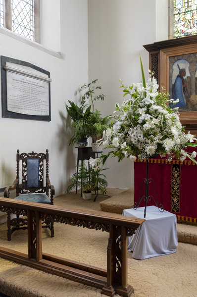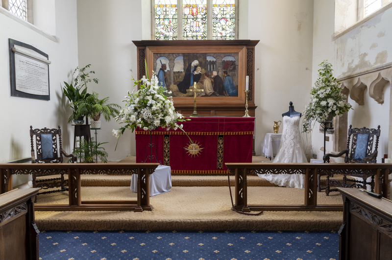 The church looked so beautiful with an array of floral displays organised by Catriona Themistocleous. The exquisite arrangement around the font that greeted visitors as they walked through the doors was created by Rosina Horton, Chair of Folkestone Flower Arrangers Club, and Janet Gallagher of Holy Trinity. The arrangement beside Catherine King’s dress, (right to the high altar), was by Cecilia Sleap, Vice Chair of Kent Floral Art and a member of Romney Marsh Flower Arrangers and Vanguard Club. The arrangement in front of the high altar was by Heather Parsons and Veronica Gardener of St George's, and the other arrangements were created by ladies of Hythe Flower Club.