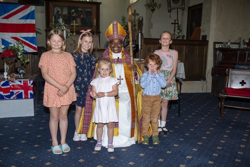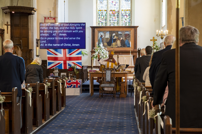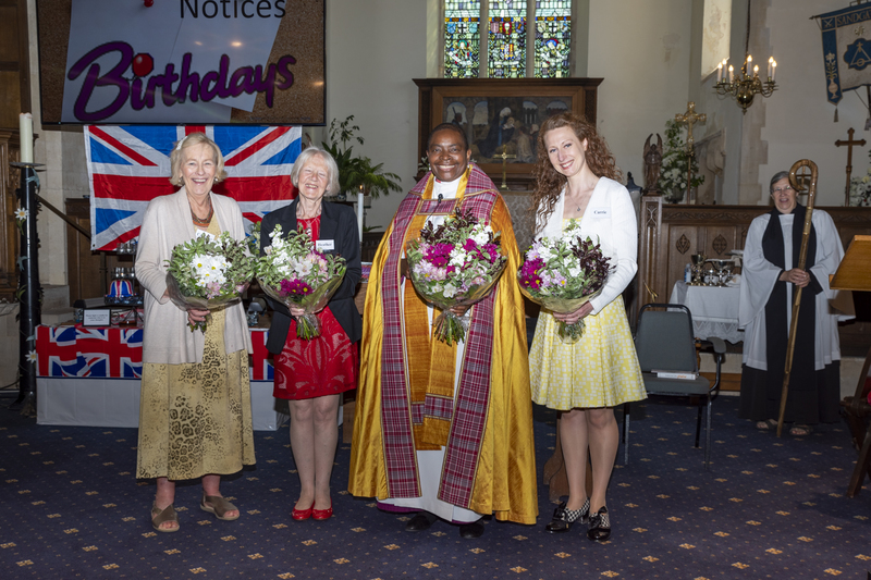 Sunday 12 June, to end our week of celebrations, Bishop Rose Hudson-Wilkin, Bishop of Dover, came to preside over our morning service. We were thrilled to have her and hear her powerful sermon on oneness and that we should never forget to Love Thy Neighbour. We were blessed to have five children among the congregation with their parents and it was lovely to see Bishop Rose take the time to bless each one during Holy Communion. The children coloured in a stained glass window of St Paul and had a photo taken with Bishop Rose. We were also delighted to welcome Revd Canon John Tapper and his wife, who contributed to our souvenir brochure.